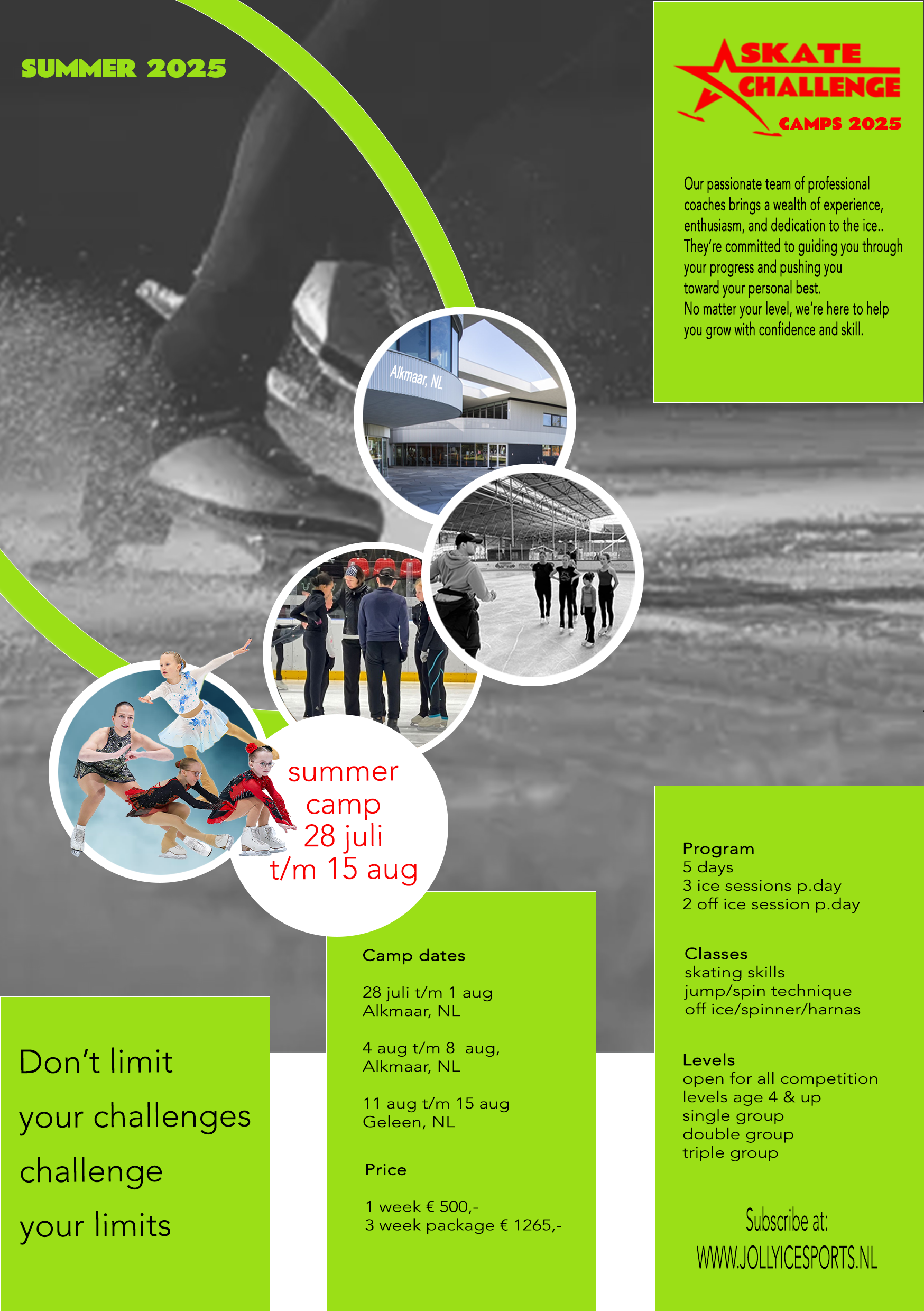 Ons team van professionele trainers begeleidt jou bij het behalen van je schaatsdoel. Welk doel dan ook, want iedereen is welkom. Kids, teens, volwassenen, recreatief, workshop, kinderfeestje en nog veel meer. Het gaat goed met ons, maar we gaan voor beter, best en dan nog een stapje verder! Je krijgt van ons een bruisende dosis energie, inspiratie en positive vibes. Voel je wat we bedoelen?